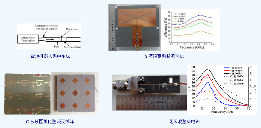 微波无线输能是为分布式可重构卫星系统、近空间飞行器、无线传感器网络和不断小型化的无线终端供能的重要手段,也是太阳能卫星的关键技术,在美、日等国已经研究了50余年,近年来逐渐引起国内学者和科技部的关注。yl23411永利集团在该研究方向上起步早、基础雄厚的优势,积极拓展理论、应用研究领域,主要研究内容包括:UHF波段整流天线的高RF-DC 效率和小型化技术,|L、S、C、Ku、Ka、W波段的高效率整流天线及其组阵技术,能量信息并行传输技术,环境电磁能量收集技术及微波输能在低功耗电子设备中的应用,针对具体应用的高效微波输能系统优化与设计。为微波无线输能技术在空间技术的应用和向产业化方向发展、在低功耗电子设备中的实际应用奠定基础。