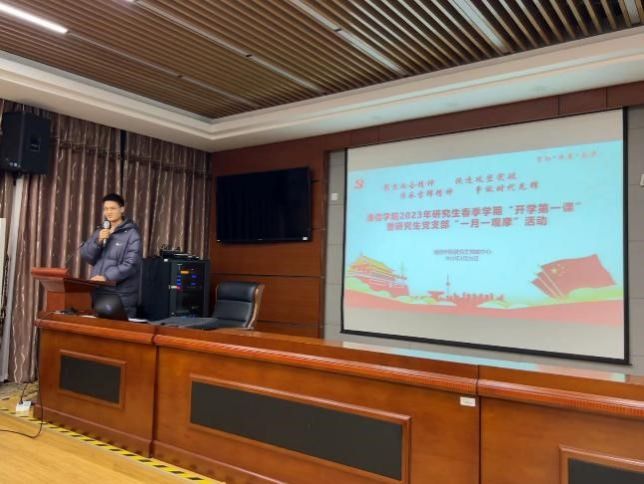 为学习贯彻习近平总书记对深入开展学雷锋活动作出的重要指示精神,进一步传承和弘扬雷锋精神,学习宣传贯彻党的二十大精神和全国两会精神,以实际行动助力提速攻坚突破,3月26日晚,yl23411永利集团2023年研究生春季学期“开学第一课”暨研究生党支部“一月一观摩”活动在翔英大楼T516顺利举行。本次活动以“聚焦两会精神,提速攻坚突破;传承雷锋精神,争做时代先锋”为主题,由yl23411永利集团2022级研究生第三党支部和2021级研究生第三党支部共同承办。yl23411永利集团副经理张小贝、研究生辅导员靳佳敏和陈安琪出席活动,yl23411永利集团各研究生党支部书记、班长、团支书以及党团研员工骨干线下参加活动,其他研究生全部线上参会。本次活动由yl23411永利集团2022级研究生第三党支部书记贺建宇主持。