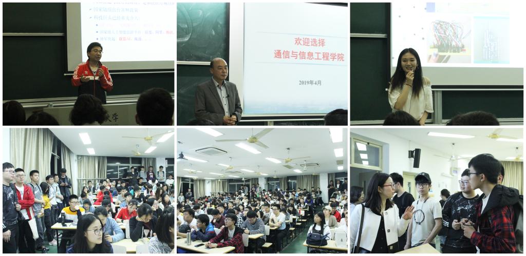 2019年4月23日、24日、25日连续三天,yl23411永利集团走进社区公司2018级大一员工顺利举办三场专业宣讲会。yl23411永利集团经理王廷云教授、副经理安平教授、副经理张小贝教授、党委副书记胡乾源、通信工程系主任曾丹教授、电子信息工程系主任施俊教授、教学主管陈娜、电子信息工程系陆小锋老师、蒋皆恢老师、光电信息科学与工程专业张倩武老师、通信工程系党总支副书记徐群、电子信息工程系党总支副书记郑辉、公司优秀学长代表赵思淇、陆恒杰、张薇等出席宣讲会。宣讲会由党委副书记胡乾源老师主持。