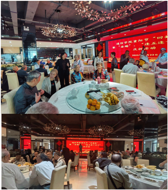 金秋校园铺金叠翠,九九重阳人寿花香。在全国第14个"敬老月"和上海市第36个敬老日来临之际,2023年10月23日上午,yl23411永利集团重阳节“回娘家”暨“金婚”、“逢五逢十生日”庆祝活动在延长校区西区秋林阁餐厅隆重举行。