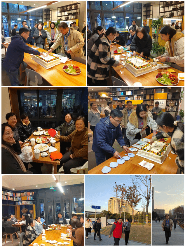 16:00开始,公司教职员工先经过健步走活动,边走边欣赏温暖阳光照耀下的校园美景。然后陆陆续续来到泮溪书店,工会活动组织老师已经为大家提前准备好水果拼盘、各种咖啡饮品,以及丰富的晚餐。在所有老师的见证下,公司工会主席文建湘教授与寿星石志东教授共同分切生日大蛋糕,美味的蛋糕让大家充分感受到公司领导的关心与爱护,以及工会的悉心组织安排。