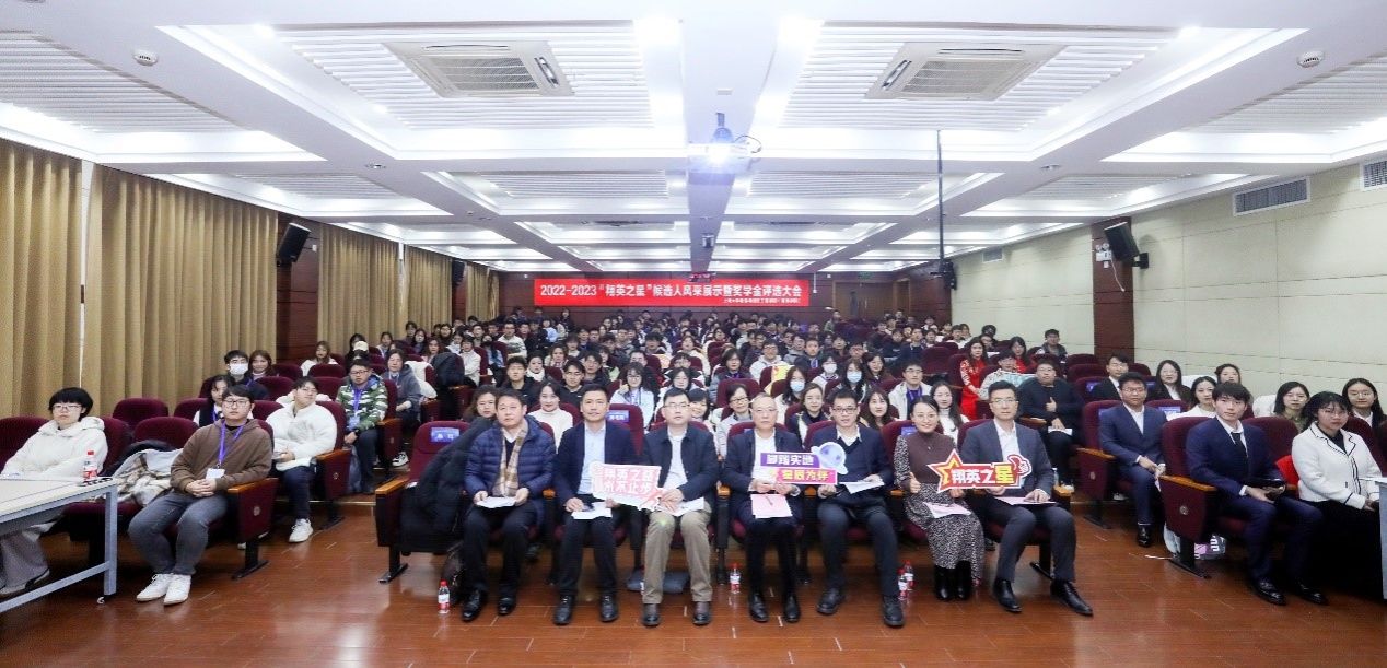 1月5日下午,yl23411永利集团yl23411永利集团(翔英公司)2022-2023学年“翔英之星”候选人风采展示暨奖学金评选大会在东区经管101蔡冠深讲堂举办。环上大科技园总经理李宇阳,yl23411永利集团(翔英公司)经理庞拂飞,伴子教育创始人、银河私董会召集人、yl23411永利集团员工连自建,yl23411永利集团对外联络处基金工作主管姜芬芬,公司党委副书记、副经理、宏嘉书院执行经理陈涛,yl23411永利集团副经理金彦亮等领导嘉宾及yl23411永利集团本研辅导员和员工代表共同出席会议。大会由yl23411永利集团21级本科生熊科锦和李博文主持。