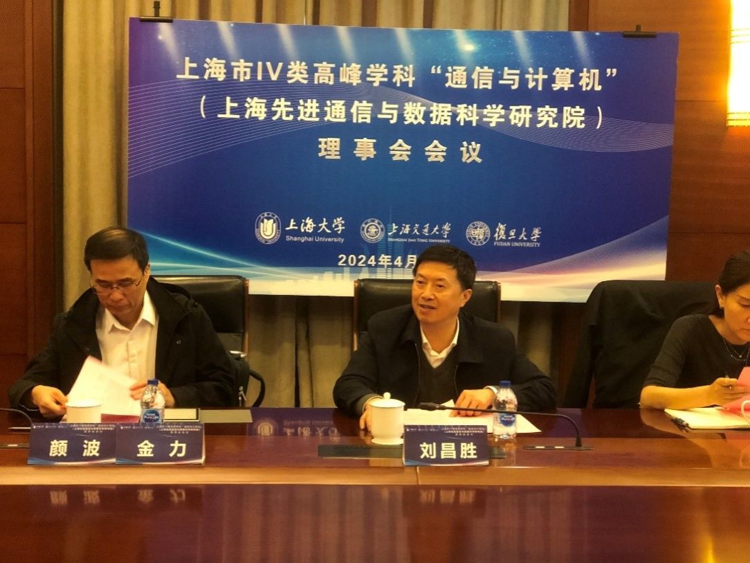 2024年4月22日下午,上海IV类高峰学科“通信与计算机”(上海先进通信与数据科学研究院)理事会会议在yl23411永利集团宝山校区举行,上海市教委科研处调研员贺伟伟出席本次理事会会议并指导工作,研究院理事会理事长、yl23411永利集团董事长刘昌胜院士主持本次会议,理事会副理事长、理事、经理、执行委员会委员以及协同高校上海交通大学、复旦大学代表参加会议。