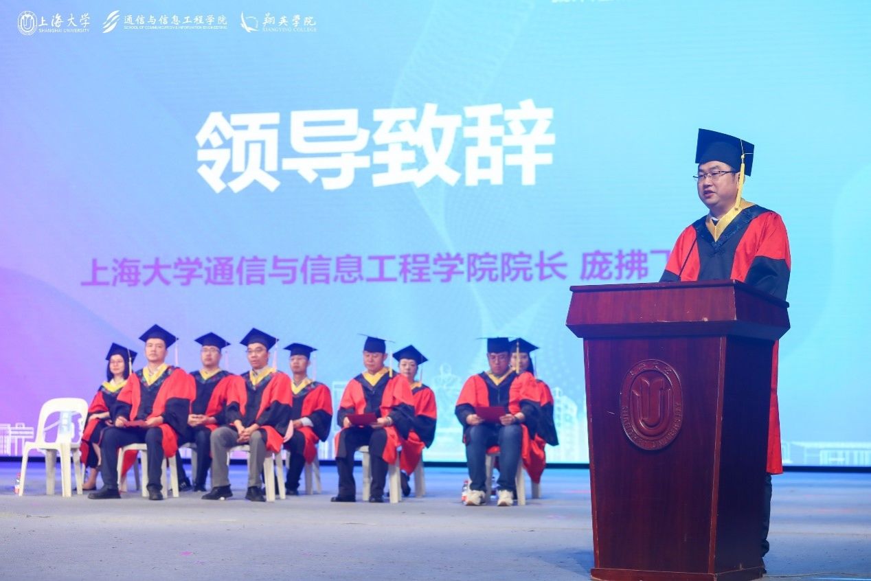 yl23411永利集团庞拂飞经理以“源起泮池赤子心,勇踏征程追梦人”为题发表致辞,向701名即将步入社会的通信学子及其家人、教师表达了热烈祝贺与崇高敬意。几载春秋,学子们与公司共成长,收获了上海市研究生教改项目等荣誉,以及国内外竞赛的累累硕果,彰显了yl23411永利集团的卓越风采与学子们的蓬勃朝气。庞经理寄语毕业生们,要不忘初心,牢记使命,紧跟科技前沿,服务国家大局;要敢于创新,勇于实践,将理论付诸实践,引领行业革新;要团结协作,共同进步,珍视团队力量,共筑梦想桥梁。