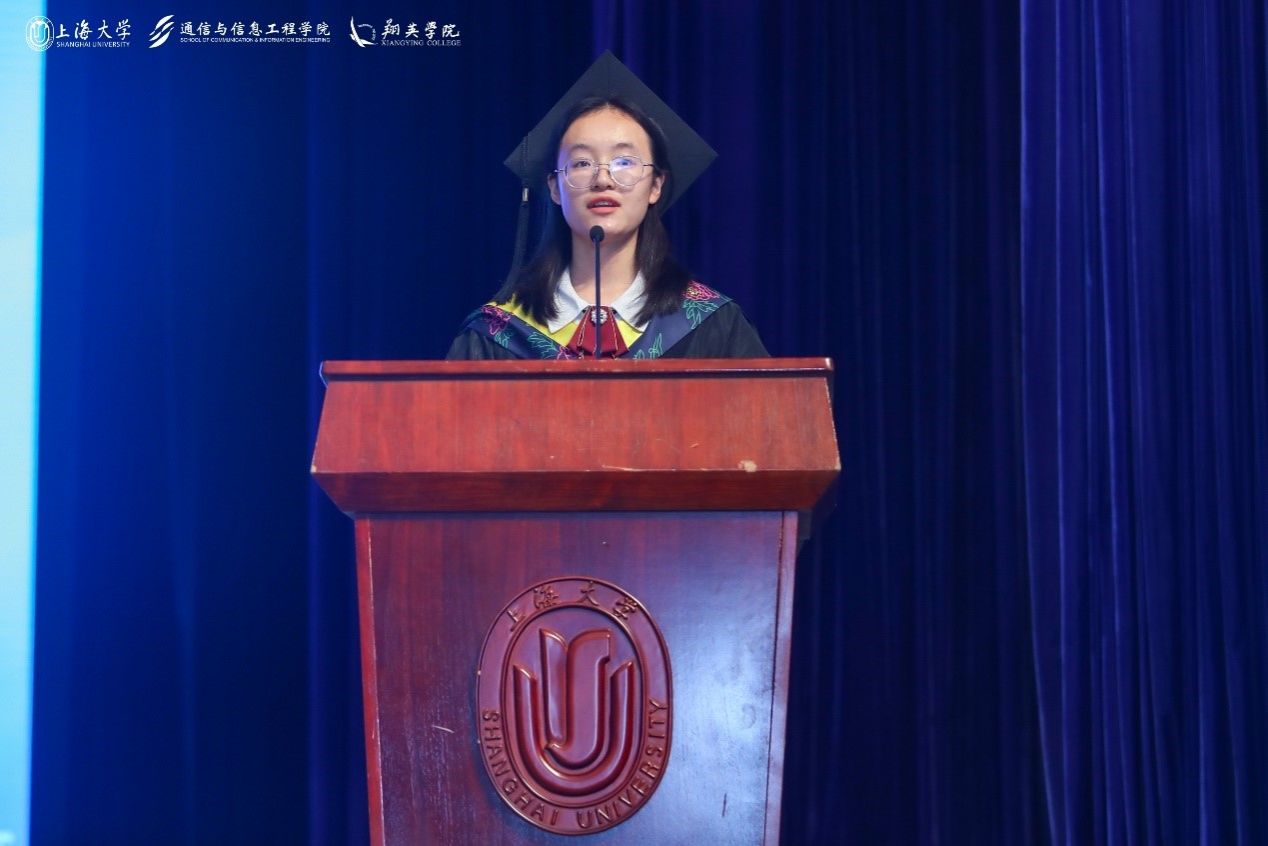 2024届本科毕业生的优秀代表郭博慧同学,满载同窗之托,慷慨陈词。她代表全体毕业生向长期以来对员工悉心培养、关怀备至的老师们,表达了最为深切的敬仰与感激之情。同时激励在场的所有通信学子,要勇于肩负起时代的重责,怀抱不畏艰难、无惧风雨的勇气,以壮志凌云的姿态,毅然迈向那个既充满未知又饱含机遇的未来。
