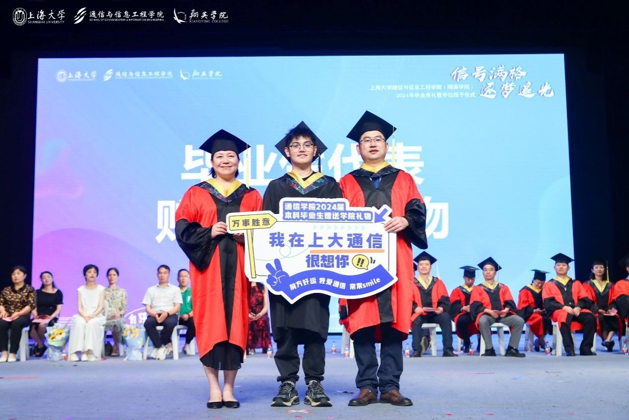 铭记师恩,扬帆起航。毕业典礼上,本科毕业生周俊儒代表全体毕业生为公司献上了一份珍贵的礼物,表达对母院深深的感激之情。