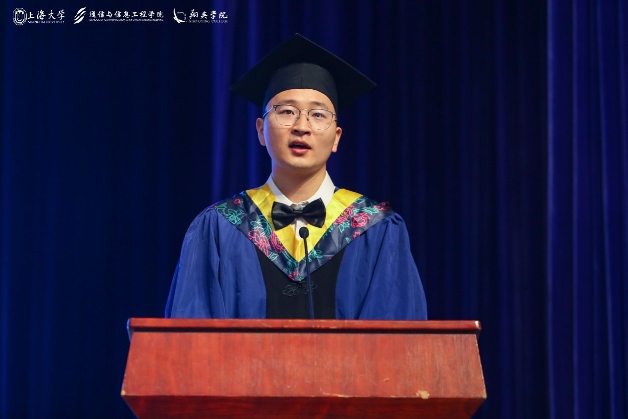 陈次恩作为2024届优秀研究生代表,用饱含深情的话语感恩良师益友、感恩父母、感激刻苦努力不曾放弃的自己。他寄语每一位即将迈出校园的毕业生要做怀揣梦想、拥有智慧、脚踏实地的青年人,为实现中华民族伟大复兴的中国梦持续贡献力量,不懈奋斗。