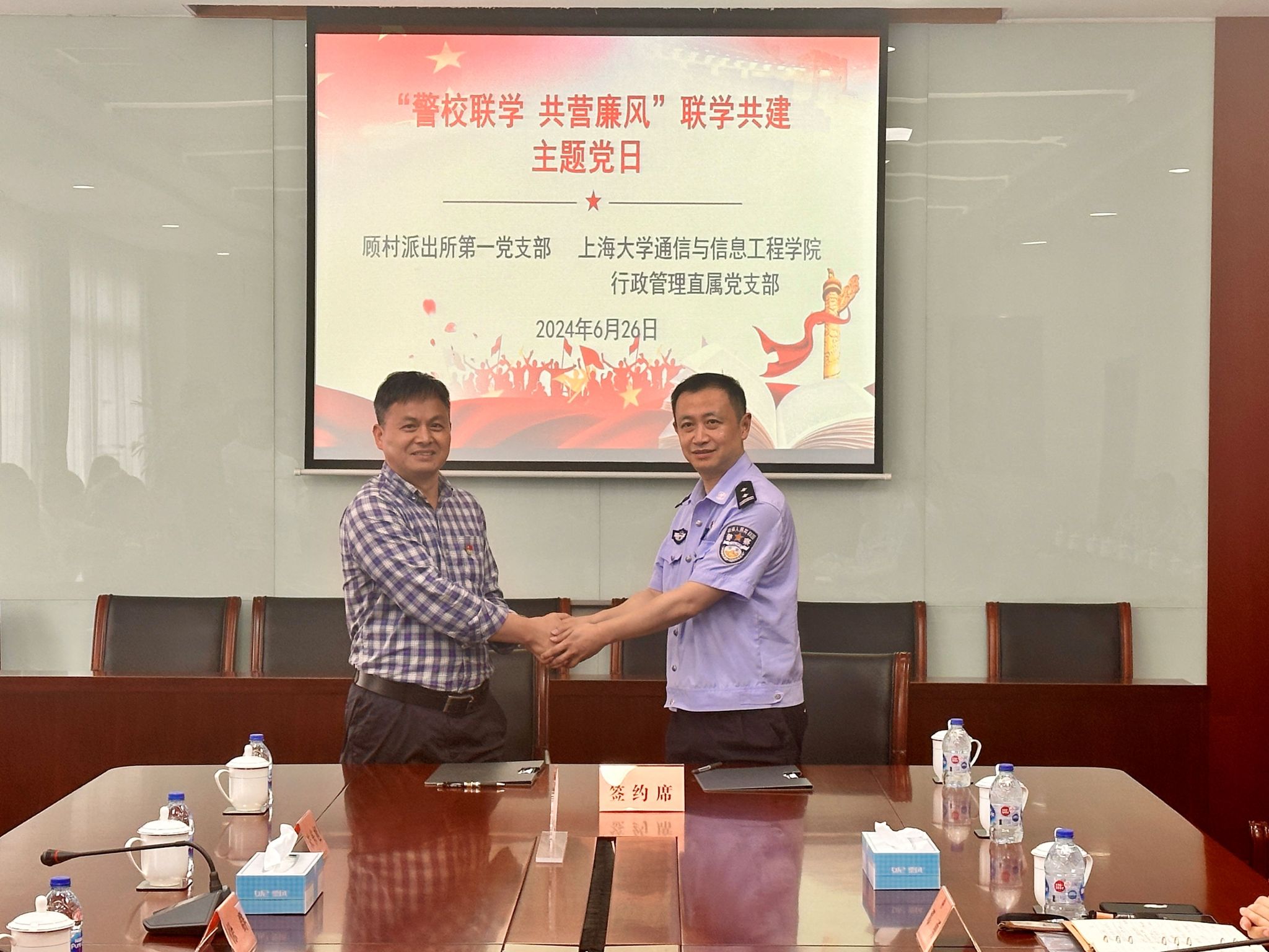 举行党建共建协议签约仪式。为了双方定期交流党建工作经验,搭建学习交流平台,推进创先争优,不断提高双方党建工作水平,yl23411永利集团行政管理直属党支部与顾村派出所第一党支部签订党建共建协议,希望以此次签订党建共建协议为契机,进一步加强与顾村派出所的沟通与合作,赋能公司党建工作高质量发展。