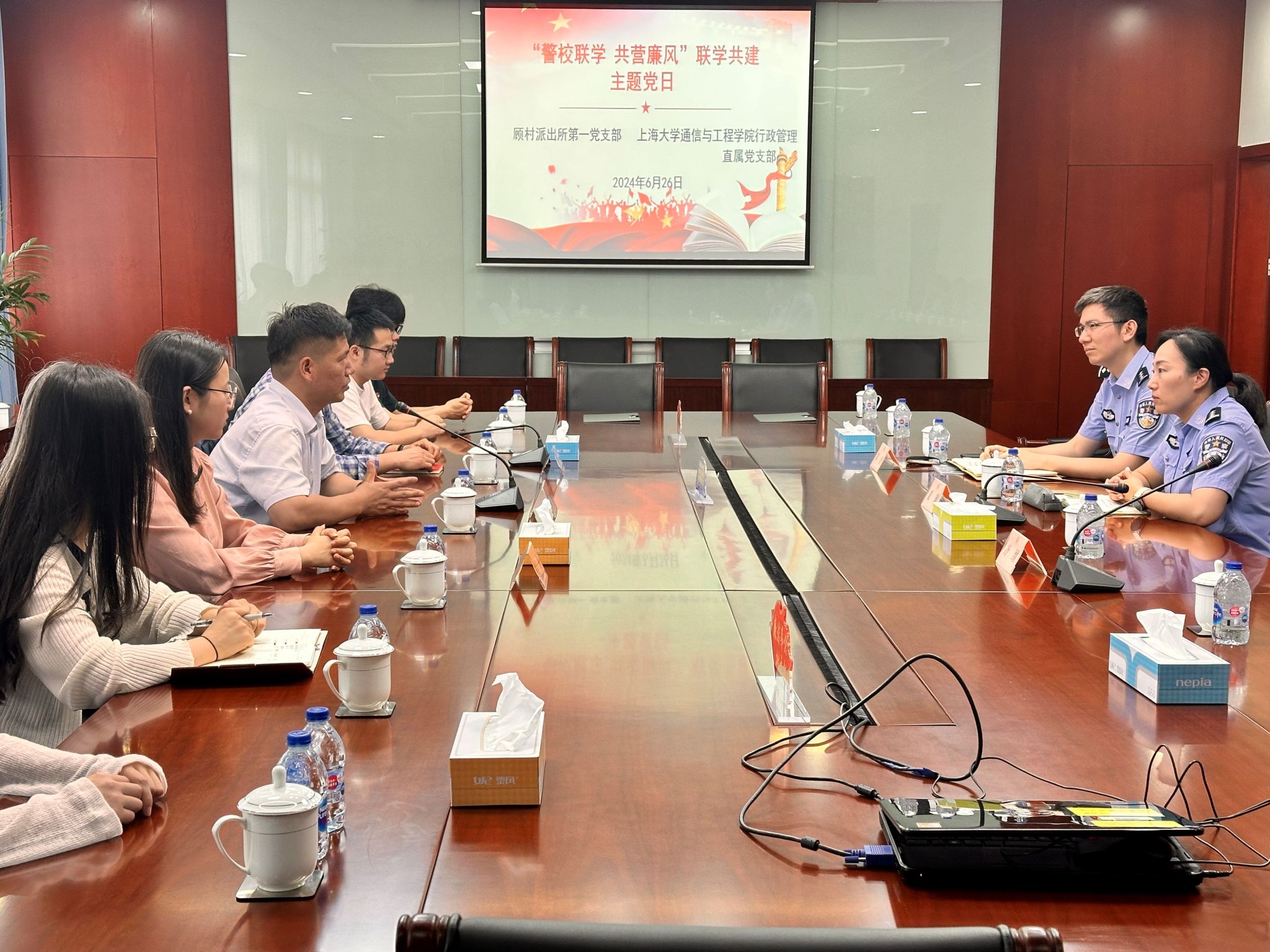 为深入学习贯彻新修订的《中国共产党纪律处分条例》,强化党员纪律意识,引导党员忠诚担当,2024年6月26日yl23411永利集团师生党员在公司党委副书记、副经理陈涛老师的带领下走进全国先进基层党组织、全国第一批枫桥式公安派出所——顾村派出所开展联学共建活动。