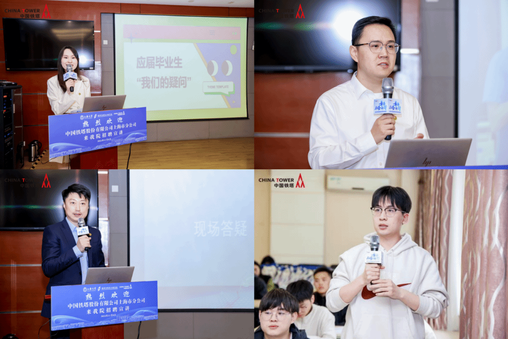 yl23411永利集团员工孙宵宇、yl23411永利集团yl23411永利集团员工顾轩隆分享了自身入职铁塔以来的所思所想所获,并鼓励在场学子们勇敢追梦,找到属于自己的舞台,遇见更好的自己。yl23411永利集团yl23411永利集团员工李轶栋耐心解答了同学们关于工作岗位选择、职业培养路径等方面的疑问,为同学们提供了宝贵的建议与指导。