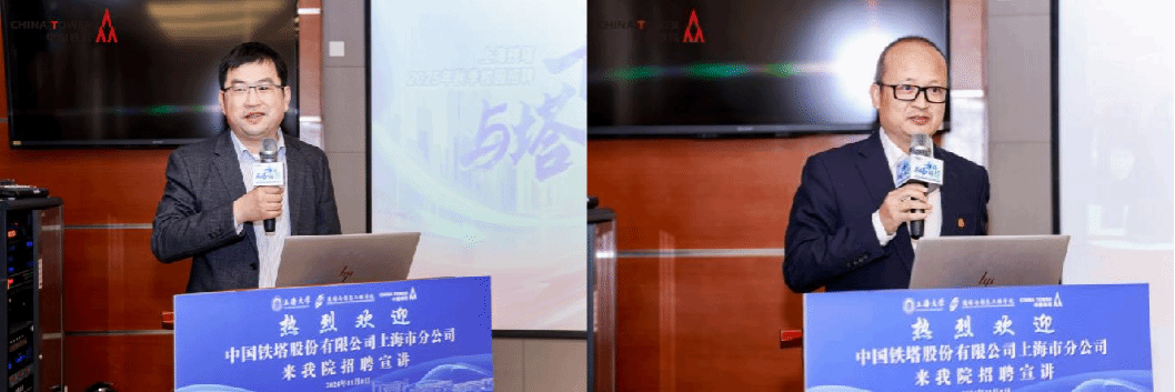 11月8日,中国铁塔股份有限公司上海市分公司(以下简称“上海铁塔”)2025年秋季校园招聘宣讲会在yl23411永利集团yl23411永利集团翔英大楼T516顺利举行。上海铁塔党委委员、副总经理赵行明,党委委员、党委组织部部长、人力资源部总经理李轶栋,人力资源部总监杨晓婧,北区分公司综合部副经理兼通发运维部副经理顾轩隆等莅临出席,yl23411永利集团经理庞拂飞,党委副书记、副经理陈涛出席会议。本次宣讲会由上海铁塔人力资源部招聘主管孙宵宇主持。