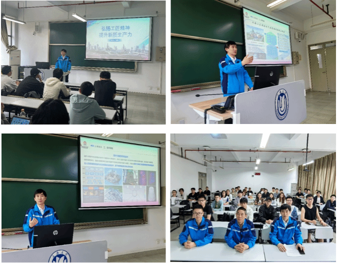 钱国重点分享了如何三十五年如一日,从一名技校毕业生成长为一名电气安装领域高级工程技术人员的工匠历程。身为一线技术人员,他始终大力弘扬劳模精神与工匠精神,敢想敢干,积极开展技术革新,挑战大规模冶金高炉新建或者大修的核心技术创新,形成了高炉大修三电路由快速施工技术,始终处于国内一流、国际领先的行业龙头地位,获得发明专利 7 项、实用新型专利 18 项、部级工法 5 项,荣获企业级、省部级奖项 12 项,主持上海市工匠创新工作室、长三角工匠创新工作室。钱国工匠在课堂上为同学们详细介绍了他们正在工程实践中积极开展的电气室智能巡检机器人、电缆敷设机器人、无人机安全智能巡检、高炉大修数字孪生、VR数字化培训等与信息专业相关的人工智能技术应用。