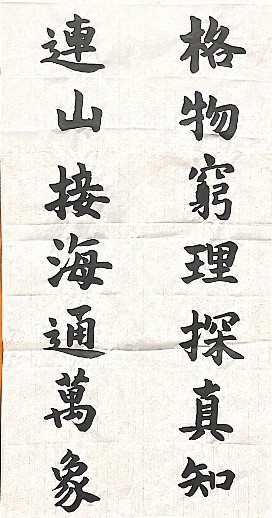 这副对联出自宋代陆游《题老学庵壁》,展现了黄宏嘉院士一生献身科学、追求真理的精神风貌。上联刻画出黄宏嘉院士孜孜以求的治学态度,通过钻研古今中外的知识,践行科学研究的长期积累与探索精神;下联描绘了他专注于科研的生活画面,日复一日地专注于科学工作中,映射出一种为科学献身的无怨无悔与持之以恒。