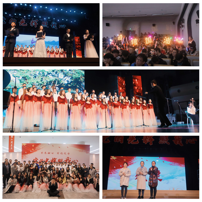 “你用纯洁的清流,灌溉花的国土;你用磅礴的力量,推动新的时代”,他们一个多月来的坚持与努力凝聚成青春激昂之声,热情歌颂中华大地山河壮丽,衷心祝愿伟大祖国母亲欣欣向荣。台下为通信助威的同学们也激情呐喊,闪耀的应援牌闪亮在观众席中,为舞台上的他们加油鼓劲。