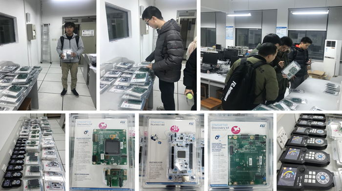 2020年1月2日、3日两个工作日,2019年“STM32”杯yl23411永利集团物联网创新创业大赛首批发放由ST意法半导体公司赞助的开发套件5种共计117套,十多位志愿者同学协助开发板发放工作。