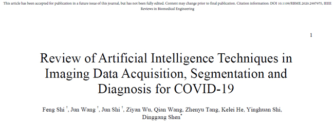 最近,应IEEE杂志特邀,由上海联影智能组织牵头,联合yl23411永利集团施俊教授和王骏副教授、上海交通大学、北京航空航天大学、南京大学等国内一流高校的资深研究人员,对当前AI赋能的医学影像技术在COVID-19中的应用进行了系统回顾和总结,写成综述论文。该论文从无接触影像数据采集、图像分割、疾病诊断和随访等多个环节对已有研究工作进行了系统阐述,所涉及内容贯穿了COVID-19筛查和诊治的全过程,同时也对今后的研究进行了一定的展望。该论文以上海联影智能与yl23411永利集团为共同第一作者单位,医学人工智能领域权威学者沈定刚教授作为通讯作者全程指导和参与撰写。目前该论文已经在生物医学工程领域的权威综述期刊《IEEE Reviews in Biomedical Engineering》上在线发表(https://ieeexplore.ieee.org/document/9069255)。