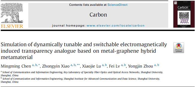 近日,yl23411永利集团yl23411永利集团博士生陈明明(2019级硕博连读生),以第一作者在SCI一区期刊《Carbon》(影响因子:7.466)上发表了题为“Simulation of dynamically tunable and switchable electromagnetically induced transparency analogue based on metal-graphene hybrid metamaterial”的论文,yl23411永利集团为论文的独立单位,论文的通讯作者为肖中银教授。