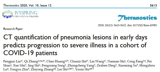 近日,yl23411永利集团张麒副教授、上海市公共卫生临床中心施裕新教授、上海市医疗图像与医学知识图谱人工智能重点实验室(依图医疗承建)石磊博士等组成交叉学科联合科研课题组,在生物医学1区杂志《Theranostics》(IF: 8.063)就这一问题发表了突破性成果,首次采用CT影像的人工智能(AI)建模对新冠患者的重症化进行预测。公司张麒副教授等为本文并列第一作者,传染病放射学专家施裕新教授及影像AI专家石磊博士为共同通讯作者。