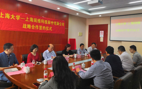 2020年5月27日下午在yl23411永利集团翔英大楼T514举行yl23411永利集团与上海阅维科技《共建“上大-阅维网络空间大数据联合实验室”合作协议》签约仪式。 签约仪式由yl23411永利集团金彦亮副教授主持,经理王廷云教授、党委书记黄素娟教授、副经理安平教授、郑国莘教授、宋英雄教授、王瑞教授、陆小锋高级实验师以及阅维科技董事长贺辉博士、首席专家顾东升等领导嘉宾出席。