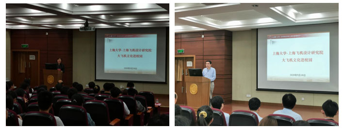 9月18日下午,yl23411永利集团—上海飞机设计研究院大飞机文化进校园活动在宝山校区东区蔡冠深讲堂成功举办。上海飞机设计研究院(以下简称“上飞院”)飞机电控集成所党总支书记李忆、飞机电控集成所电气集成部部长郦江、教育培训中心主任陆海平等一行8人,研究生院副经理张之江、招毕办副主任贺利、研究生院培养处处长毛建华、yl23411永利集团经理王廷云、党委书记黄素娟、副经理张小贝、机电工程与自动化公司副经理彭晨等出席本次活动。来自yl23411永利集团、机电工程与自动化公司等公司的研究生与本科生近200人参加本次活动。此次活动由公司党委书记黄素娟主持。