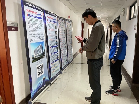 4月20日一早,在翔英楼T516门口出现了多个由八〇四所精心制作的航天科普展板,展示了新中国航天史的发展历程。新中国航天史始于1956年,迄今已走过了65年。我国航天事业从无到有、由弱变强的光辉历史,是老一辈航天人凭借着忠诚使命的爱国情怀、艰苦奋斗的拼搏精神、一丝不苟的科学态度、严慎细实的工作作风一步一个脚印书写出来的,更是百年党史中浓墨重彩的一笔。展板吸引了很多同学驻足观看,并通过扫描二维码进入线上答题活动,通过互动答题增加了大家对新中国航天史的了解,激发了大家探索航天知识的热情。