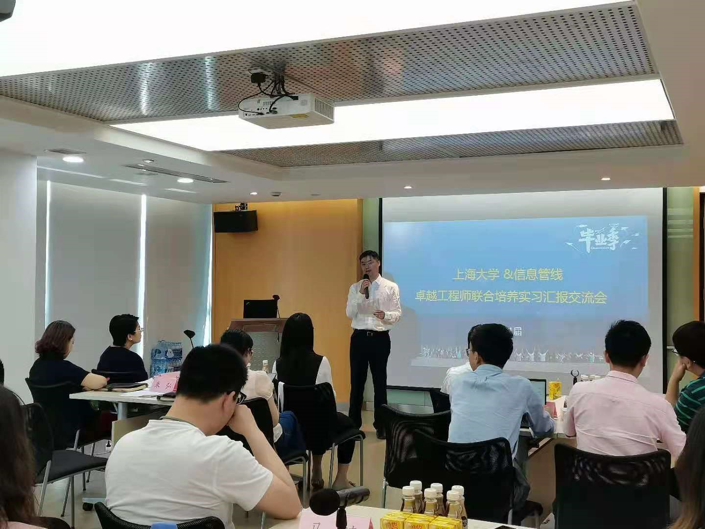 2021年5月25日下午,由yl23411永利集团翔英公司(yl23411永利集团)与上海市信息管线有限公司开展的卓越合作校企联合培养“卓越工程师”计划首期实习生汇报交流会顺利开展。出席会议的有:管线公司党委书记、总经理朱弘,党委委员、副总经理吴农、企业导师,翔英公司教学主管马秀丽、校内导师,以及翔英公司2021届和2022届实习生。