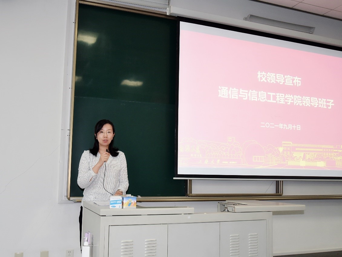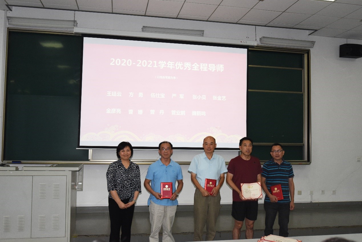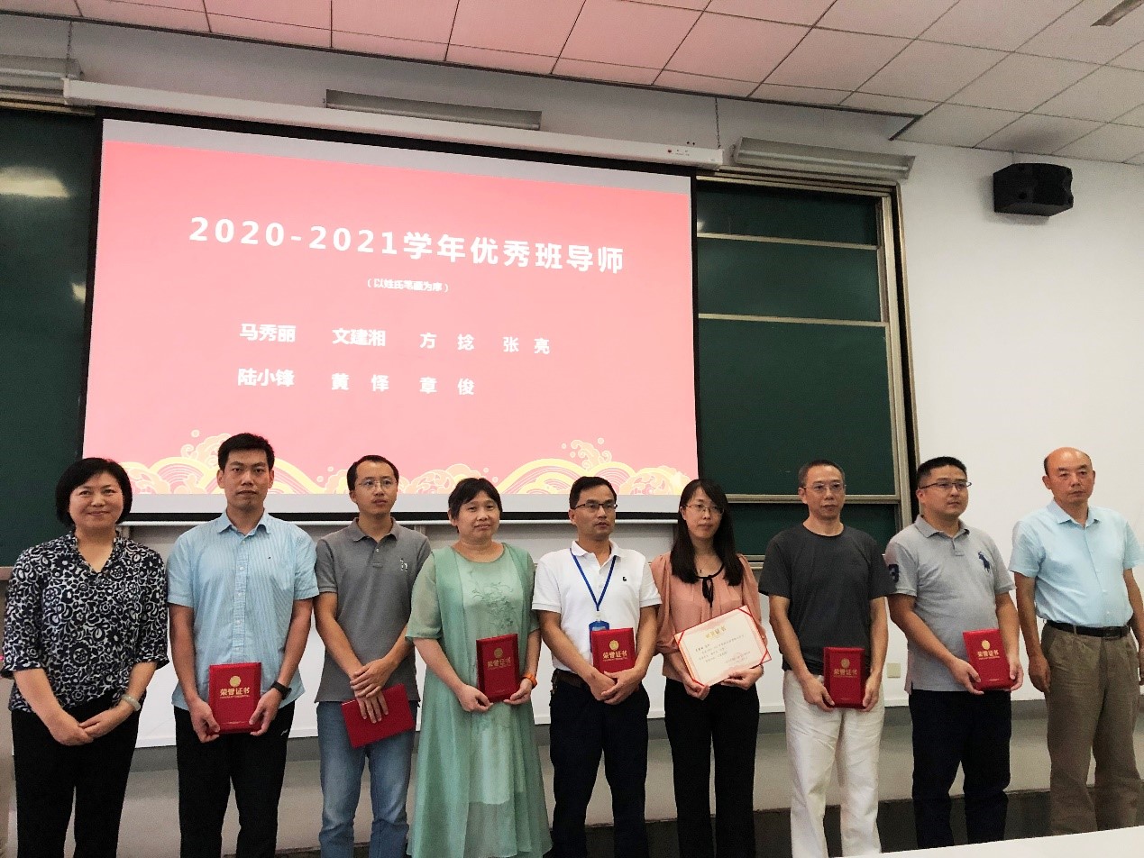 领导班子宣布结束后,公司党委书记黄素娟主持2020-2021学年本科生优秀导师表彰,总结公司本科生全程导师制工作情况并为2020-2021学年获评优秀班导师和全程导师的教师颁发荣誉证书。值此教师节之际,黄书记向获奖教师表达热烈祝贺,希望每位教师要加强教师思想政治教育学习和师德师风教育学习,模范践行“四有好老师”标准,努力当好“四个引路人”,始终坚守“四个相统一”,围绕立德树人根本任务弘扬伟大建党精神。