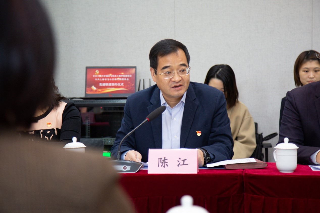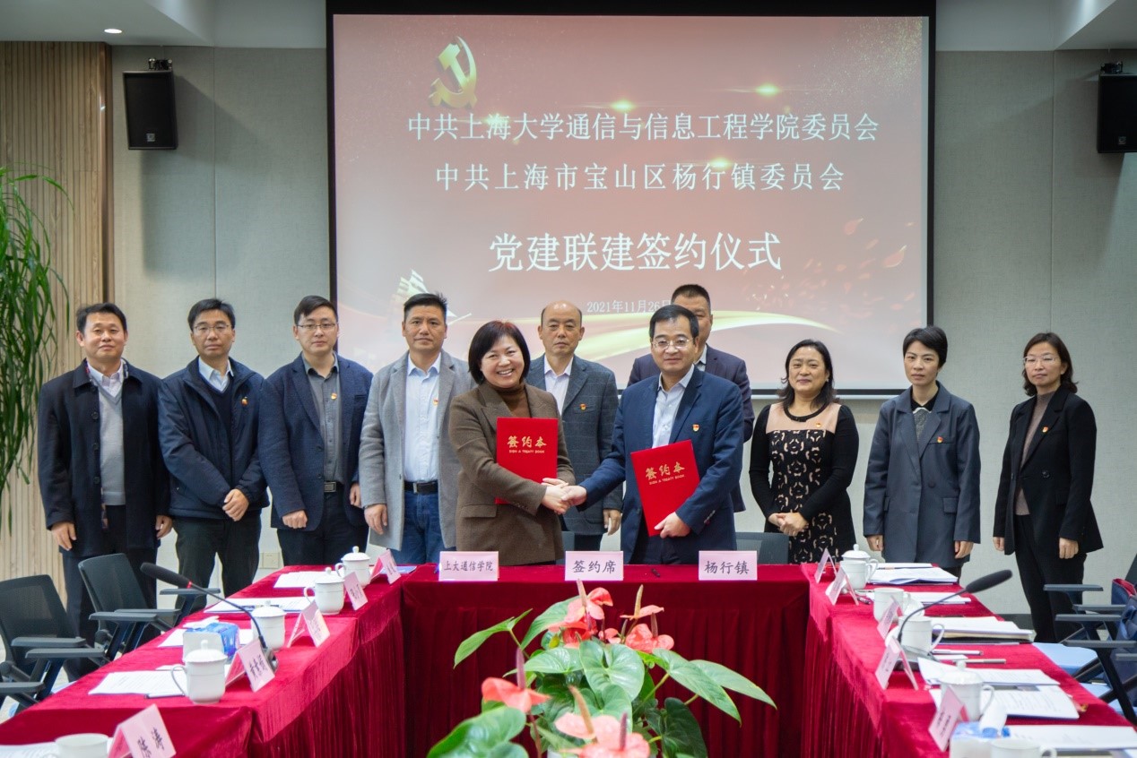 为深入贯彻落实新时代党的建设总要求,进一步创新高校和城市基层党建工作,凝聚宝山建设发展合力,11月26日下午,公司党委和杨行镇党委在吴淞泗塘科技园举行党建联建签约仪式。公司党委书记黄素娟,经理、党委副书记王廷云,党委副书记陈涛,副经理张小贝、金彦亮、施俊;杨行镇党委书记陈江,人大主席梅勇,党委副书记吴璟璆,党委委员、纪委书记、监察办主任薄慧霞,党委委员(组织)袁玲,人大副主席、总工会主席张明国等出席仪式。