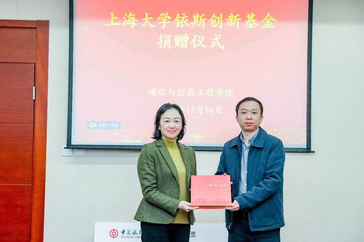 户外寒风料峭,室内爱心暖人。大家欢聚一堂,在与会嘉宾的见证下,归帆与陈然互赠捐赠牌和捐赠纪念盘,龚思怡赠送给陈成《百年上大》画册一本。此次归帆向yl23411永利集团教育发展基金会捐资100万元,用于支持yl23411永利集团智慧城市研究院建设发展,为公司教育事业发展添色增彩。