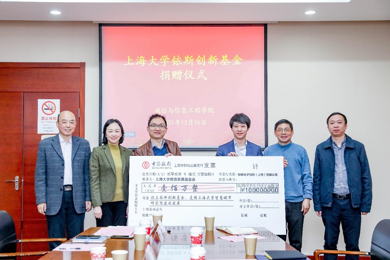 2021年12月16日上午,yl23411永利集团铱斯创新基金捐赠仪式在宝山校区翔英大楼隆重举行。宝山区科委副主任朱建华,宝山区发改委产业科副科长冯明,铱斯电子科技(上海)有限公司创始人&CEO归帆、常务副总包青成等,上海北斗卫星导航平台有限公司总经理陈成等,yl23411永利集团党委副书记、副董事长龚思怡,yl23411永利集团对外联络处处长陈然、副处长曹俊,yl23411永利集团经理王廷云,公司教授王瑞和谢亚楠等出席。捐赠仪式由公司党委副书记陈涛主持。