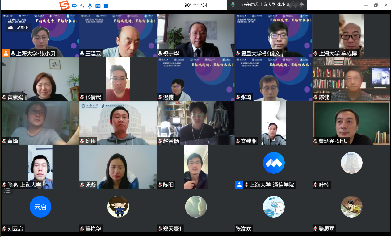 论坛互动交流环节学术氛围浓郁、热烈,腾讯会议参会人员和腾讯直播线上观众踊跃提问,祝宁华院士都一一进行了细致和精彩地解答,包括微波与光波融合发展、光电子器件耦合封装、光电混合系统PT、光学延迟线、铌酸锂调制器、微波光子雷达、卫星激光通信等前沿科学和技术难题,参会老师和同学们深受启发、受益匪浅。在抗疫特殊时期,上海五校通过联合举办“E起战疫情,E起向未来”信息技术论坛,凝聚共识,互相学习交流,共克时艰,携手向前推进抗疫、教学和科研等各方面工作,五校联动、同心抗疫,共同为抗疫的最终胜利贡献力量。