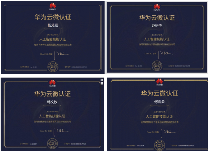 参与本次昇腾AI目标检测创新实践课程的yl23411永利集团30位老员工经过了前期动员、报名、课前自学培训等流程,主要来源包括人工智能社团成员、智能基座金课“嵌入式系统项目设计”课程选课同学、老员工创新创业实践项目成员、部分专业竞赛参赛队员等。通过本次短暂的课程学习,同学纷纷表示对于昇腾开发技术有了深入了解,AI开发能力得到了快速提升,对于后续AI相关课程学习、课程项目实践、学科竞赛参与都有很大的帮助。并且课程参与同学还结合昇腾线上微认证体系,通过微认证考试获得了华为人工智能技能认证证书。后续随着疫情逐步缓解,线下教学条件具备之后,yl23411永利集团将会与华为智能基座计划协调,结合之前已经配置的Atlas 200开发平台,进一步开展昇腾图像和自然语言处理算法实战、昇腾云端协同开发与应用、MindSpore开源创新实践等线下昇腾创新实践课程,并组织学员基于实践作品,积极参与华为ICT大赛及其他相关赛事的华为赛道,丰富产教融合实施环节,为yl23411永利集团同学提供更多的创新实践机会。