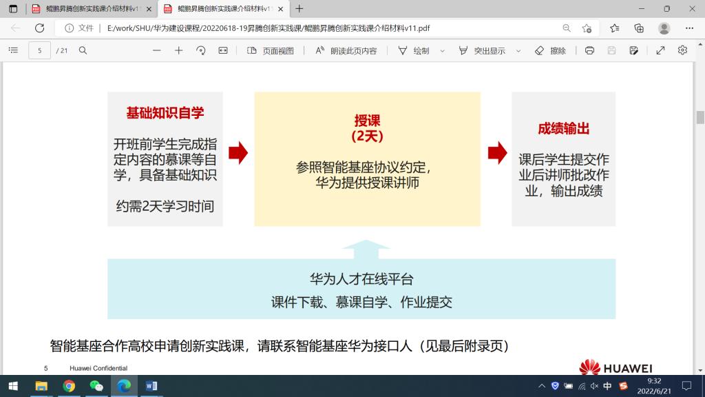 随着智能化技术不断影响社会发展的方方面面,算力已经成为数字经济时代新生产力,算力基础驱动社会经济发展,华为公司围绕鲲鹏、昇腾建设计算产业根技术,构建全栈能力,提供多样性算力资源。本次昇腾AI目标检测创新实践课由yl23411永利集团陆小锋老师、张恒老师发起,华为公司昇腾计算领域冯武强、朱麟两位AI培训金牌讲师授课,通过6月18-19日2天集训,拓展老员工计算技术实操能力。包括了课前在线慕课基础知识自学、课中昇腾AI目标检测创新实践课程讲授、课后作业提交与华为昇腾微认证考核输出三个环节。