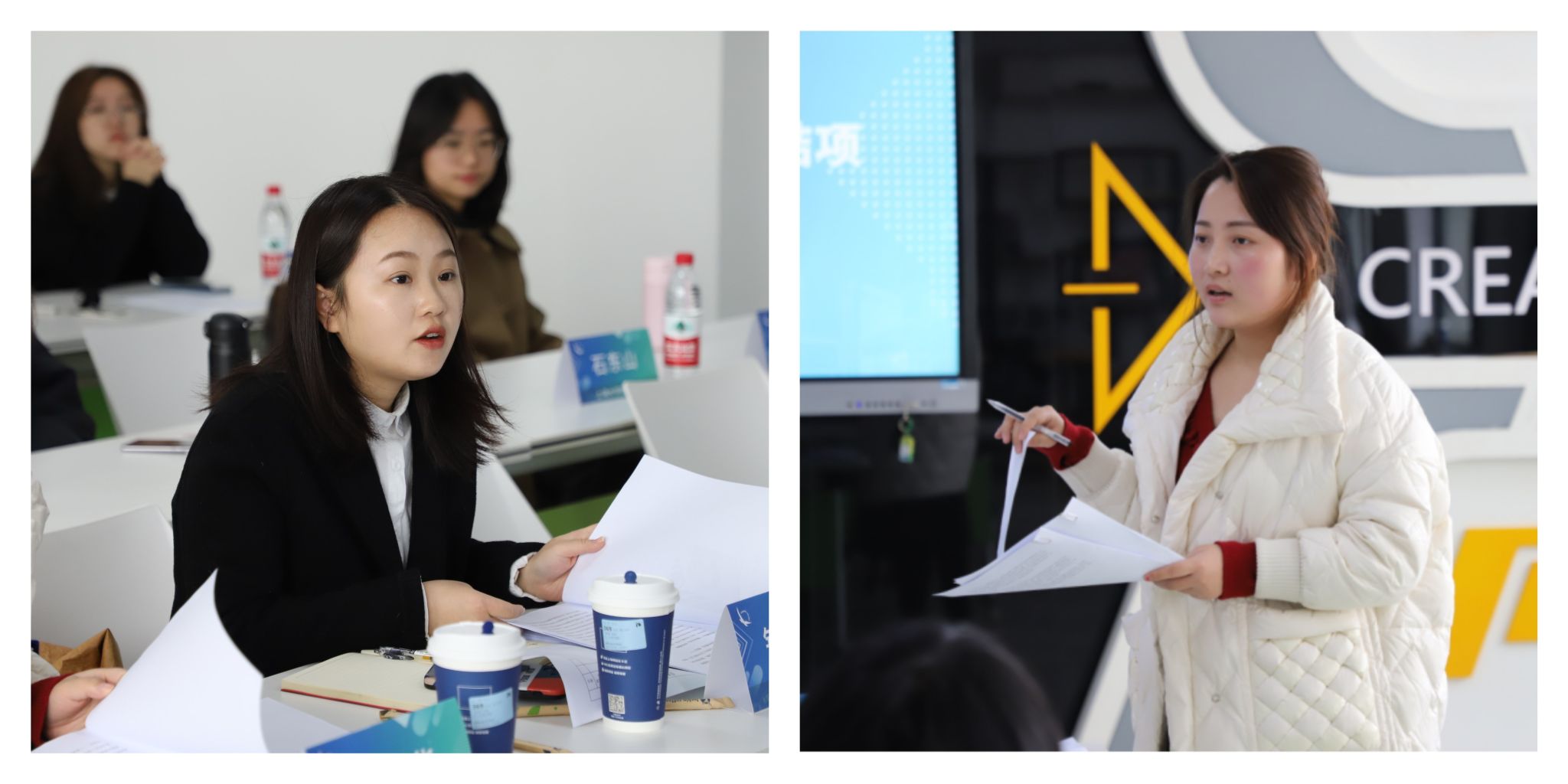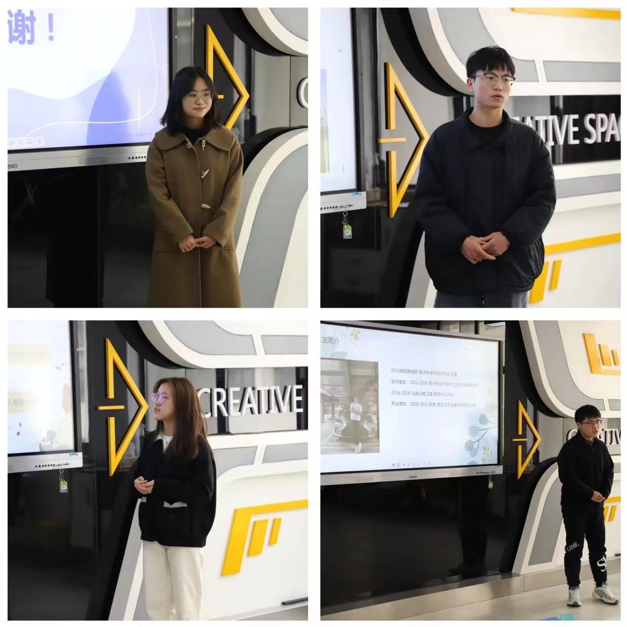 随后,各小组进行员工寻访项目成果展示,首先每组进行时长为3分钟左右的汇报,主要围绕实践过程、挖掘到的员工亮点、访谈的中心思想、传递的精神价值和思考收获等展开。每组汇报结束后,指导老师们与同学们一一进行了互动交流点评,指出访谈中的亮点与不足之处。其中,钟艺铃老师就采访报道体例问题进行了详细讲解,强调了采访报道的格式问题与访谈流程、技巧等等,分享了很多员工访谈的小故事,在座同学对员工工作、员工育人都有了更深的了解和理解。