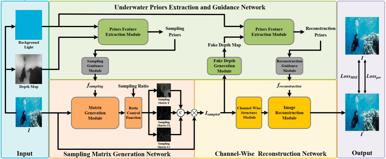 近日,yl23411永利集团硕士研究生庄立昊在导师沈礼权研究员的指导下,以第一作者在《IEEE Transactions on Circuits and Systems for Video Technology》(中科院工程技术一区期刊,影响因子:5.859)上发表题为“UCSNet: Priors Guided Adaptive Compressive Sensing Framework for Underwater Images”的研究论文,沈礼权研究员为通讯作者。
