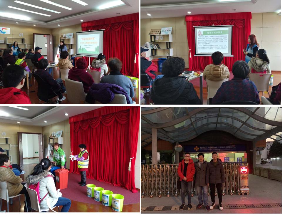 1月25日下午,谢飞扬等志愿者一行3人来到上海市奎照路280号,参加了由爱易公益服务社举办的主题为“垃圾分类新时尚”的社区公益活动。此次活动面向的对象是社区群众,志愿者们主要负责布置会场、组织社区群众、协助游戏环节等,主持人由爱易公益服务社负责人担任。