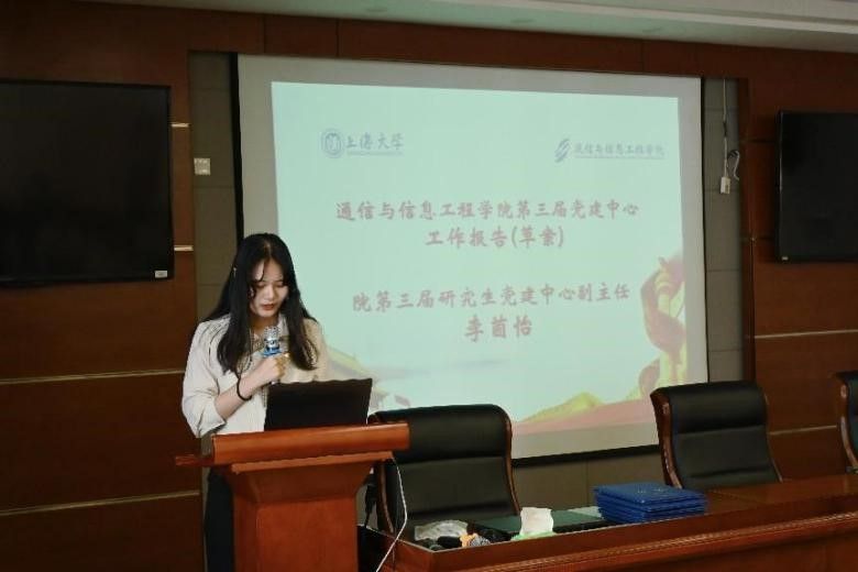 随后,第三届研究生党建中心副主任李茵怡作第三届研究生党建中心工作报告。李茵怡同志汇报了本届研究生党建工作内容,总结了工作经验与不足,她指出党团研要进一步细化组织架构及信息文件,明确各部门的职责,党建要带领团研进一步完善相关制度,密切交流合作。