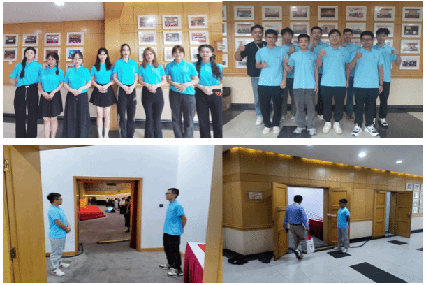 活动两日,嘉宾们入住乐乎楼,场外接待组同学负责引导嘉宾登记入住、签到服务、发放餐券以及提醒参会须知等。场外,志愿者们负责维持茶歇休息区的基本秩序、卫生环境,精心服务嘉宾,耐心解决嘉宾问题。