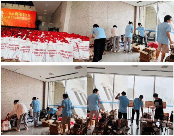 大会纪念品筹备小组负责在座谈会召开前一天,将准备给到场来宾的物资打包装袋,组员们合理分工,团结协作,高效地完成任务。虽然过程十分辛苦,但是当第二天看到领取纪念品的嘉宾们脸上洋溢的笑容时,便觉得一切的付出都是值得的。