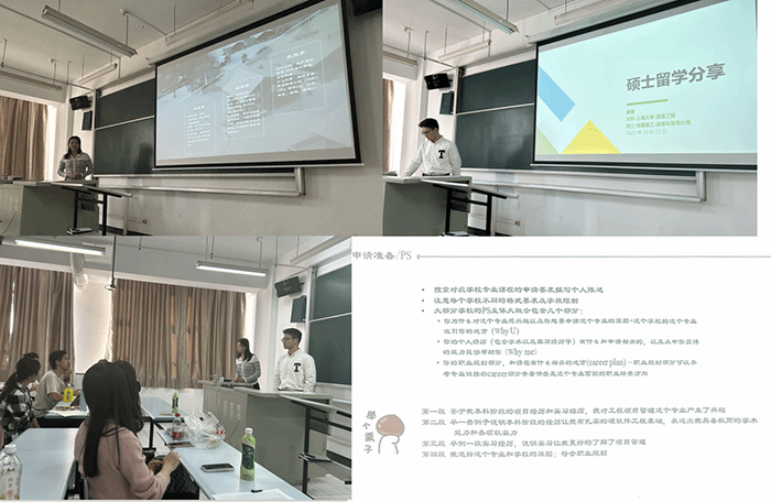 两位学长学姐详细地分享了自己的留学历程,从前期准备到在读生活,在择校、专业选择、职业规划、职工活等各方面都分享了自己的切身经验,为学弟学妹们提供了思路,开拓了视野,对未来的留学规划有了更多的了解。