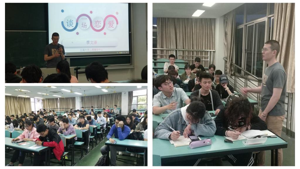 冯唐说:“春水初生,春林初盛,春风十里,不如你。”课程前季老师播放了一个恋爱动画短片,让略有拘束的课堂一下子就变得轻松起来。