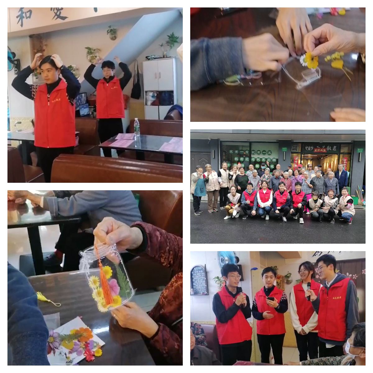 在活动过程中,大家饱满的热情给温馨的小屋带来了年轻的活力,老人们脸上洋溢着开心的笑容。从担任迎宾和主持人到教老人们制作干花书签等活动,我切身感受到了为人民服务、为老人服务带来的非凡意义。令我感到惊讶的是这里的义工普遍年龄也很高,他们身为老人却在雨花敬老组建了一个大家庭来为社区老人提供公益服务,这更让我意识到身为党员将服务群众不能停留在口头上而是要落实在具体的行动上。在今后的生活中,我也会更加积极地去了解群众需求,把为服务群众变成日常的必修课。