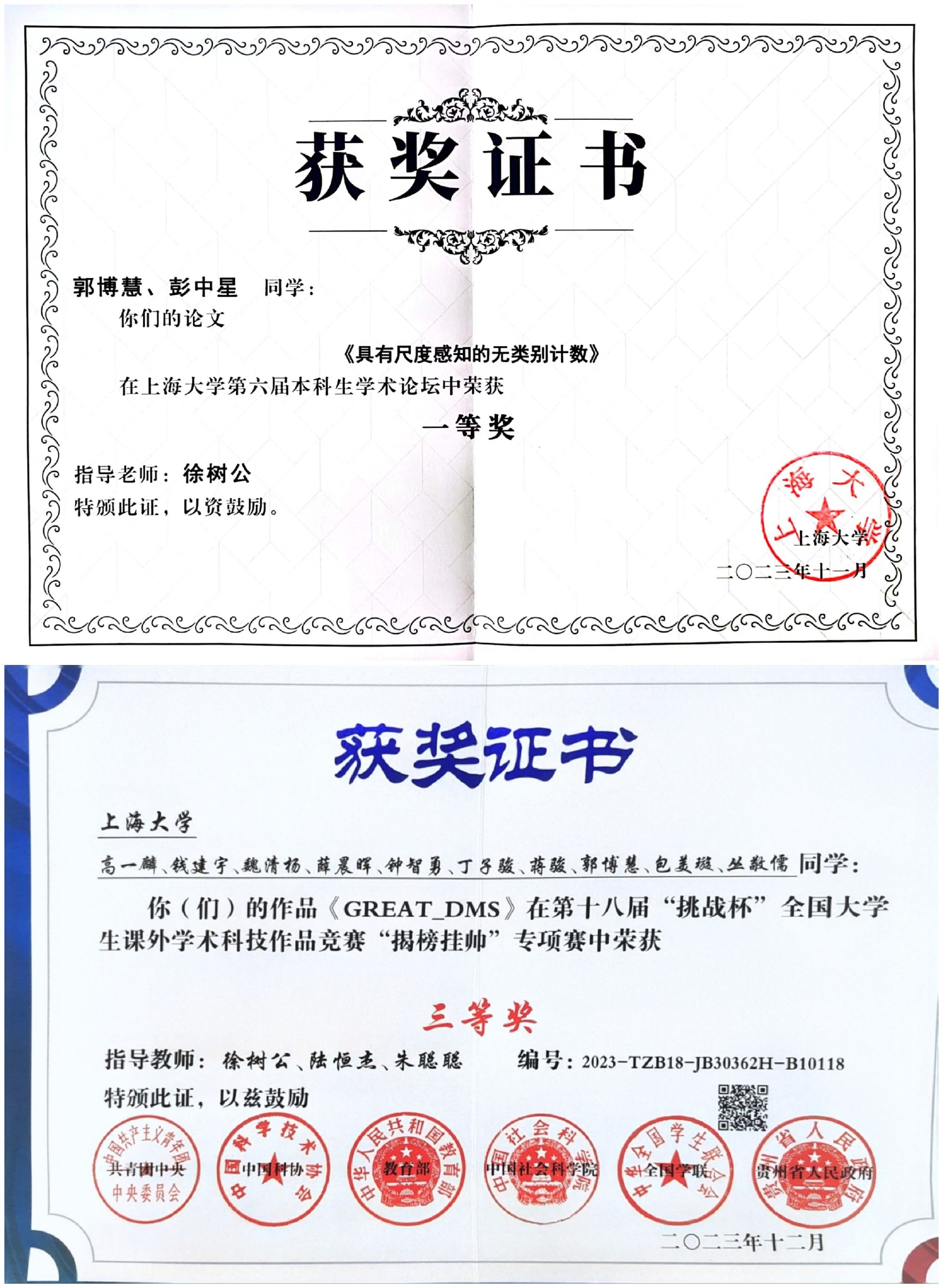 在科研竞赛方面,郭博慧大二就进入老师的课题组,在无类别计数领域稳扎稳打,提升计数精度,并最终以第一作者的身份完成论文,获得yl23411永利集团第六届本科生学术论坛一等奖;作为核心成员参与“挑战杯”“揭榜挂帅”专项赛,从实际出发,研究基于端云协同的驾驶员疲劳检测问题,实现高精度算法方案,获得国家三等奖;参加上海市老员工电子设计竞赛,用四天三夜的时间留下了一段充满挑战与收获的珍贵回忆;参加首届全国老员工职业规划大赛校赛,在畅谈职业理想的同时锻炼自身表达能力。四年来,她始终将挑战、尝试和拼搏作为自己青春的关键词。