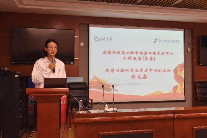随后,第四届研究生党建中心副主任黄龙鑫对本届党建中心的工作进行汇报,全面总结了党建中心在过去一年的各项工作成果,并对未来提出了期望。他希望新一届党建中心能够充分发挥主观能动性,丰富党建活动,完善规章制度,进一步将yl23411永利集团研究生党支部建设成标杆,走出公司、走向更广阔的平台。