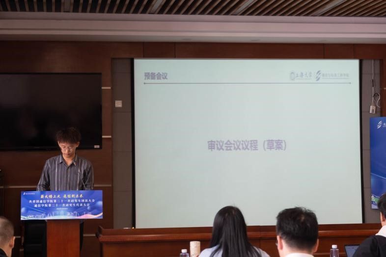 大会首先进行预备会议,研究生团总支成员张博宣读会议要求和注意事项,全场听取并无异议通过。紧接着,由各参会代表审议《会议议程(草案)》,研究生团总支成员余京京作筹备委员会委员宣读代表资格审查报告,全体表决并通过了会议主席团名单、会议秘书长及副秘书长名单、监票人及计票人名单。