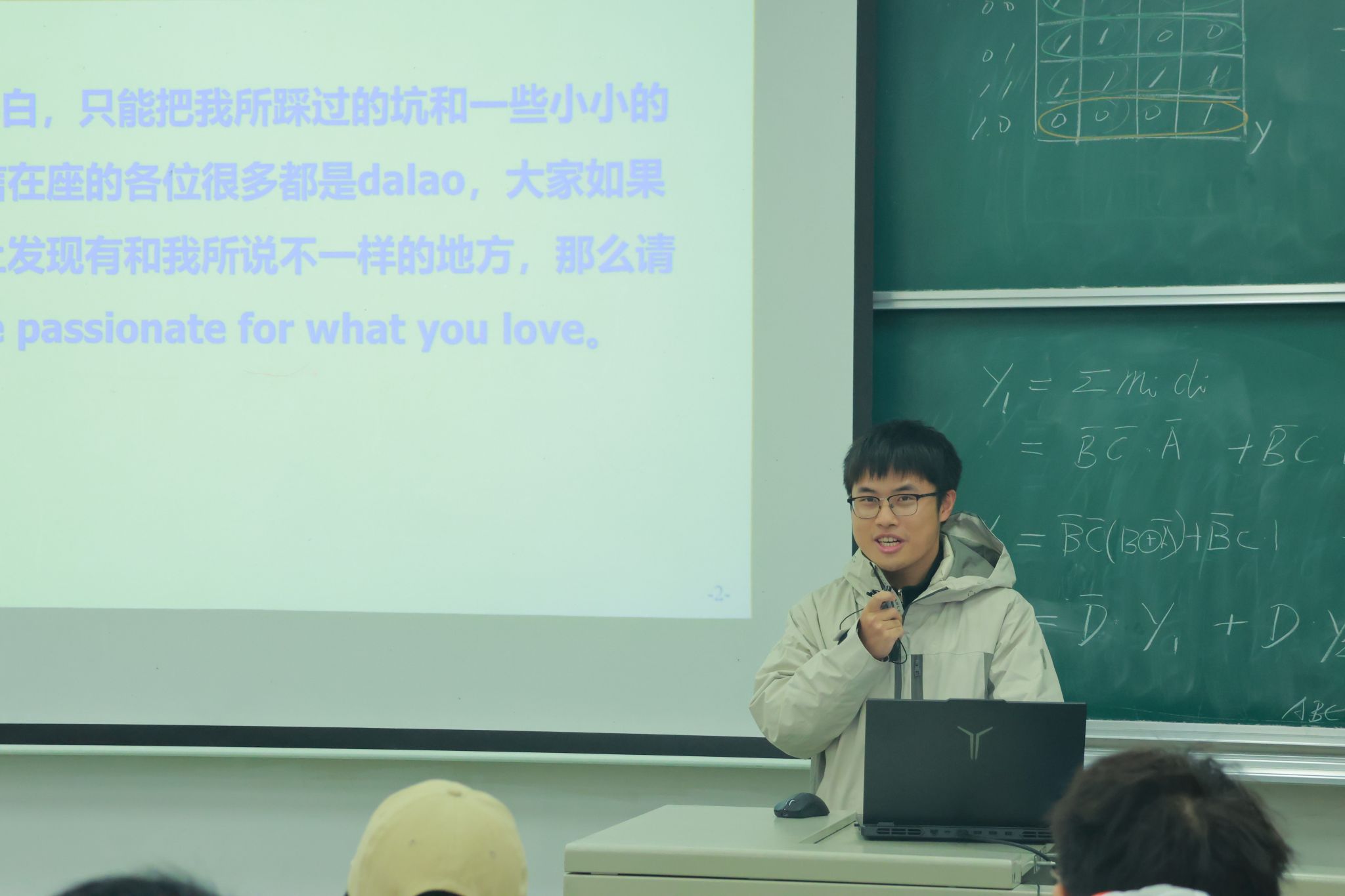 此外,主持人江子恒学长也简短分享了自己的科研经历,他提到自己利用两个暑假的时间成功发表了两篇EI论文,鼓励在场的学弟学妹们尽早接触和了解AI,多读多用AI,因为这可能会为人生带来意想不到的启发和机遇。