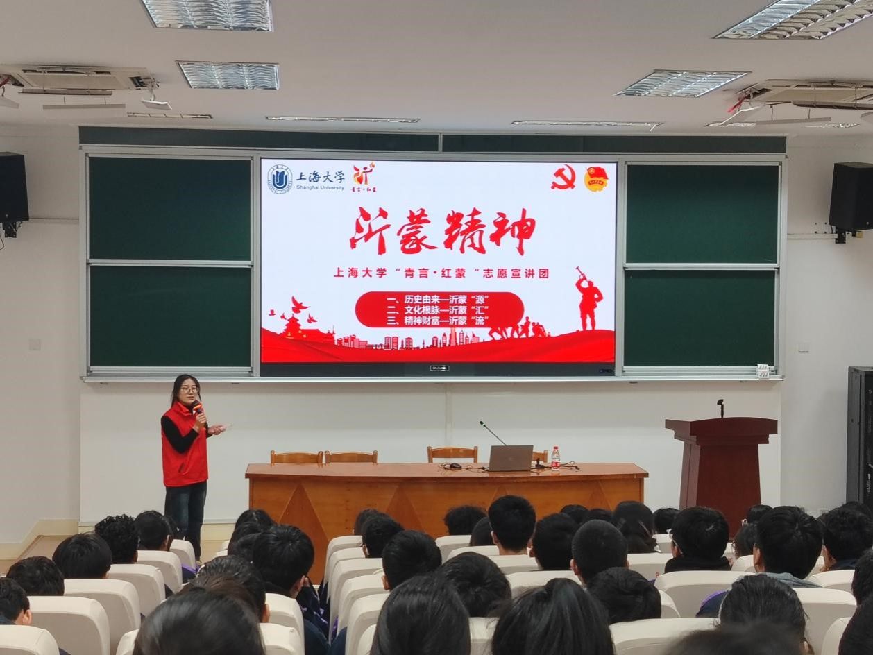 宣讲团成员杨慧洁首先围绕沂蒙的名字由来、沂蒙精神的形成及发展展开宣讲,通过讲述“沂蒙母亲”王换于、“沂蒙红嫂”张淑贞和“女子火线桥”的故事,将同学们带回到了那个战火纷飞却又充满希望的年代,再现了沂蒙根据地党政军民共同铸就沂蒙精神的过程。