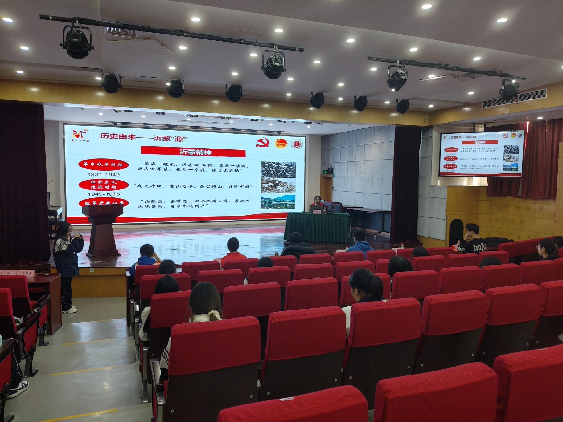 宣讲团从沂蒙“源”、“汇”、“流”三方面对沂蒙精神的历史由来、文化根脉和精神财富进行介绍,从革命战争时期到改革开放以来,沂蒙人民始终爱党爱军、开拓奋进、艰苦创业、无私奉献。在谈到沂蒙精神的精神财富时,宣讲团又以临沂推出的沉浸式项目《跟着团长打县城》为例,以喜闻乐见的方式让同学们深刻理解沂蒙精神内涵。