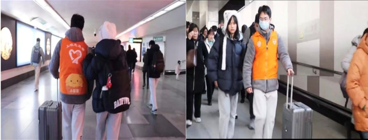 在春运期间,靳铠瑜、杨可薇、梁安迪、陈逸尧、陈俊恺等多位同学前往火车站担任志愿者,协助工作人员维持秩序、引导旅客购票乘车、帮助老弱病残孕等特殊旅客。指路看似简单,却需要耐心和细心;办理送客凭证,则培养了责任和担当。在几天的志愿当中,同学们服务了上百名旅客 ,为春运的平安运行贡献了自己的青春力量。