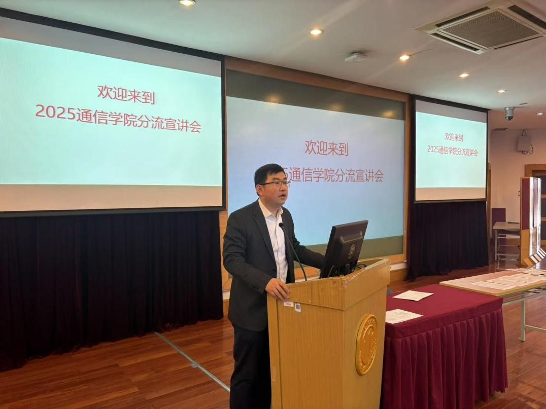 “通信是人工智能时代的基石。”宣讲会上,yl23411永利集团经理庞拂飞教授以工业革命为引,深入剖析人工智能与大语言模型浪潮下的行业机遇。他指出,通信技术不仅是信息传递的桥梁,更是智能时代的核心驱动力。庞经理鼓励同学们:“选择专业,要立足兴趣与职业规划,理性选择专业方向。”